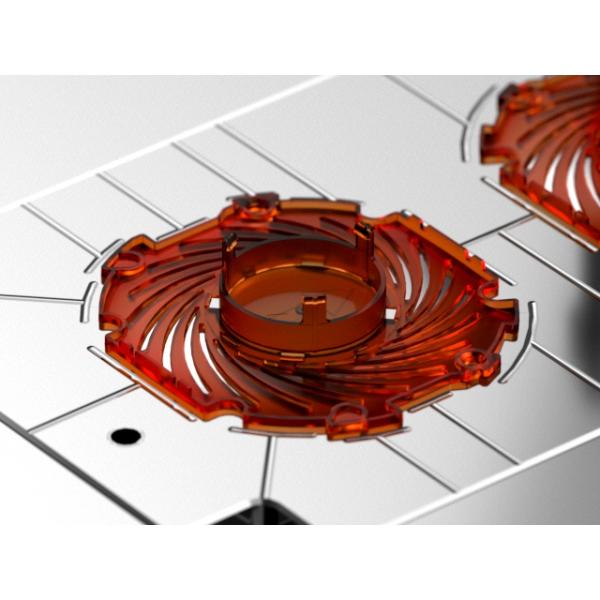 | This is a three-plates mold with pin point gate, self-degating; minimized gate marks ensure aesthetic part appearance; harden the cavity and core with S136 and surface polished with VDI21# to improve the anti-wearing and anti-corrosion performance, so that it can adapt to complicated environment and meet automated production requirements | |||||